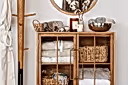 Şimdi de Büfet’i banyoya alalım… Havlularını hem depolamak, hem de sergilemek için mükemmel bir yol! Hasır sepetler kullanarak dekorasyonunu güçlendirebilir ve göstermek istemediğin eşyalarını bu sepetlere gizleyebilirsin.
