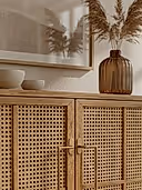HAMM için hazeran, tasarımın kendisidir. Tamamı el işçiliğiyle üretilen doğal hazeran; büfe ve dolap kapaklarında, çekmecelerde ve yatak başlarında ürünlere nefes aldırır. Cam ve nervürlü cam kullanımları, ışığı yumuşatarak mekânın ritmini sakinleştirir.