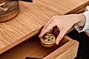 Metalde ise zamansızlık ve dayanıklılık esastır. Ürünlerimizde kullanılan elektrostatik toz boyalı metal; masa ayaklarında, sehpa strüktürlerinde ve dolap detaylarında pürüzsüz, korozyona dayanıklı ve uzun ömürlü bir yapı sunar. Eskitme pirinç ve parlak pirinç detaylar ise kulplarda ve bağlantı elemanlarında tasarıma zamansız bir karakter kazandırır.