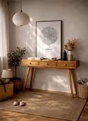 Masif ahşabın doğal dokusu, sade formlar ve dengeli oranlar; antreyi evin doğal bir parçası hâline getirir.