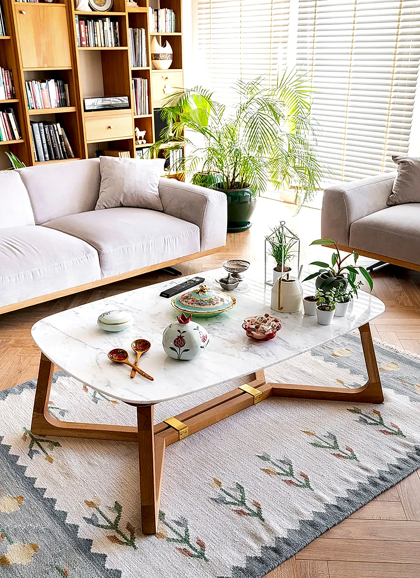 Mermer masa ve sehpalar zarif tasarımı ve üstün el işçiliğiyle öne çıkmaktadır. Özel tasarım masalarımız iki parça halinde üretilmiştir. Üst kısmı doğal dokulu mermer olup, alt gövde kısmına sabitlenmemiştir. Bu özelliği ile taşınma kolaylığı sağlarken monte ve demonte işlemlerini zahmetsiz hale getirir ve masanın doğal yapısının korunmasını sağlar.